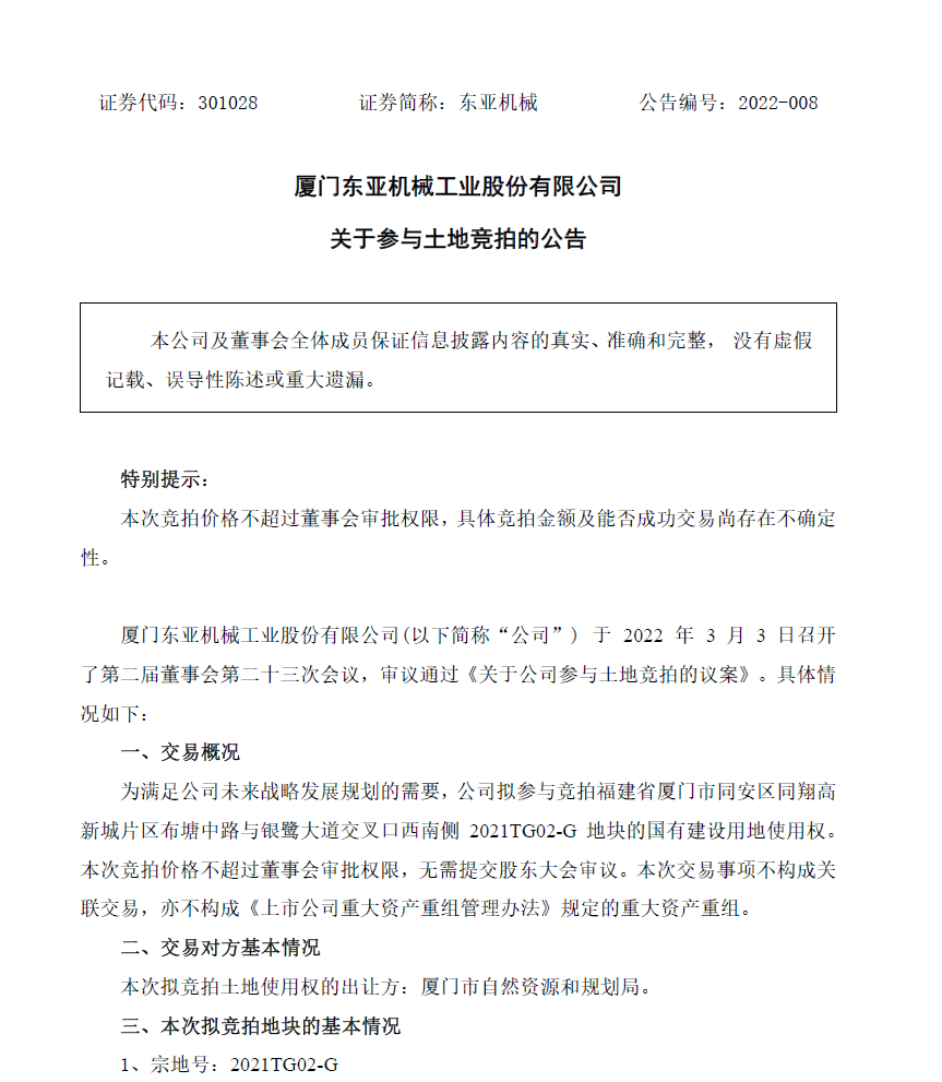 關(guān)于參與土地競拍的公告