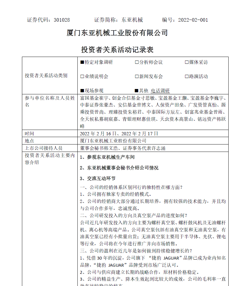 2022年2月18日投資者關(guān)系活動記錄表